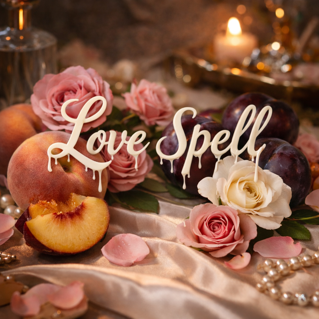 A soft yet captivating blend designed to set the mood. Juicy peach and ripe plum open the scent, unfolding into delicate notes of rose and gardenia, all grounded with a gentle touch of white musk. Warm, sensual, and comforting, this candle fills your space with love, passion, and elevated self-care energy—perfect for cozy nights and intentional moments.